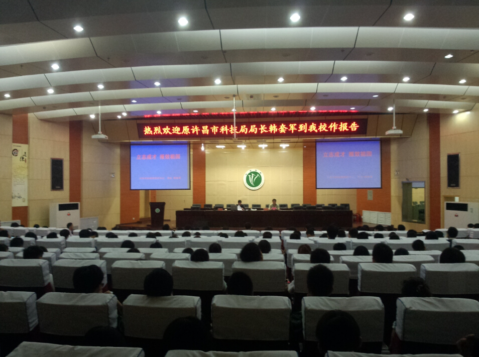 为了帮助14级新生树立远大理想,9月10日晚,应beats365亚洲版官网、软件职业技术学院邀请,原许昌市科技局局长韩套军在学术报告厅作了题为《立志成才 报效祖国》的精彩报告。beats365亚洲版官网、软件职业技术学院经理张志立、党总支书记副书记翟广辉、部分教师及2014级新生近400人参加了报告会。报告会由张志立经理主持。