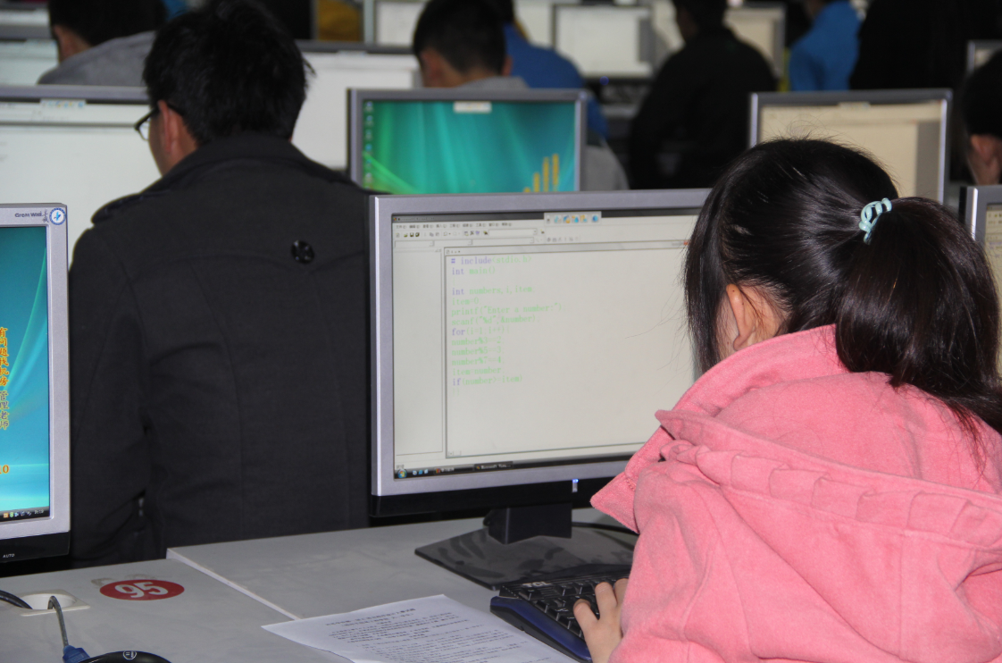 本次大赛共分一年级组和高级组两个比赛等级,大赛比拟了“蓝桥杯”全国软件大赛比赛流程,采用5—6道难度不同的编程题,着重考察C语言的结构、数组、指针、函数、文件、标准输入输出等方面知识。选手在规定时间(两个小时)内完成竞赛题目,提交试卷方可离开。整个比赛既外显安静又内藏激烈,到处是拖腮低颔的思考,到处是专注凝神的操作,最终都汇集成噼噼啪啪的键盘敲击声。在比赛过程中,相关领导亲临比赛现场指导工作,同时对本次程序设计大赛工作给予充分的肯定。