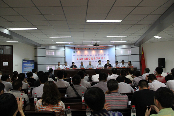 7月6日上午,由河南省高等学校计算机教育研究会主办、公司承办的第六届软件学院教学研讨会在公司办公楼第三会议室召开。公司经理陈建国、副经理张建军,河南省高等学校计算机教育研究会理事长段银田、常务副理事长甘勇,北京软件行业协会执行会长、北京航空航天大学软件学院经理孙伟,河南省高等学校计算机教育研究会副秘书长李学相,软件教学专委会秘书长李占波,公司教务处处长高新战,软件教学专委会副主任车战斌、刘黎明出席会议。来自全省36所高校、12家企业的150余名代表参加研讨会。大会由河南省高等学校计算机教育研究会副理事长、软件教学专委会主任王世卿主持。