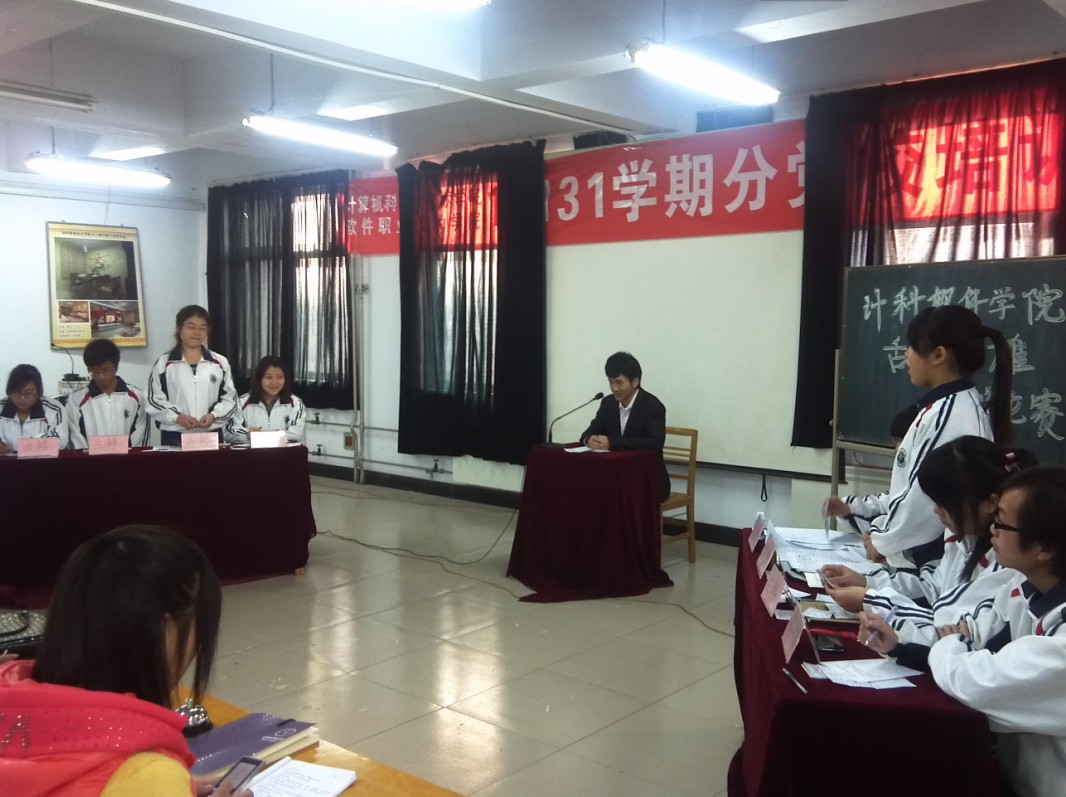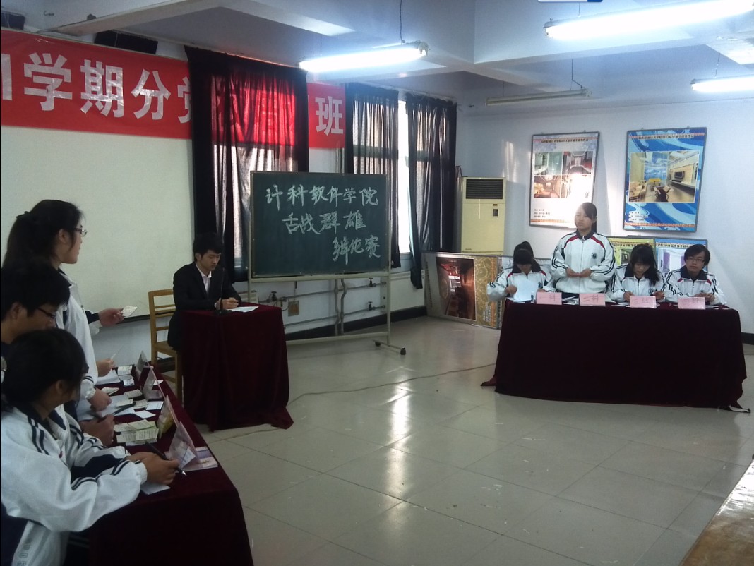 2012年12月8日九点,公司“舌战群雄”辩论赛在计科楼311会议室举行。本次辩论赛双方围绕“国学是否应该大力宣扬”展开辩论,正方辩手唐孟孟、谢精杰、马银霞、王泽文以“国学应该大力宣扬”为论点,反方辩手张佳妮、王燕、余伟、张慧梅以“国学不应该大力宣扬”为观点,双方展开辩论。员工会主席裴新华,副主席黄华出席本次辩论赛,担任评委。